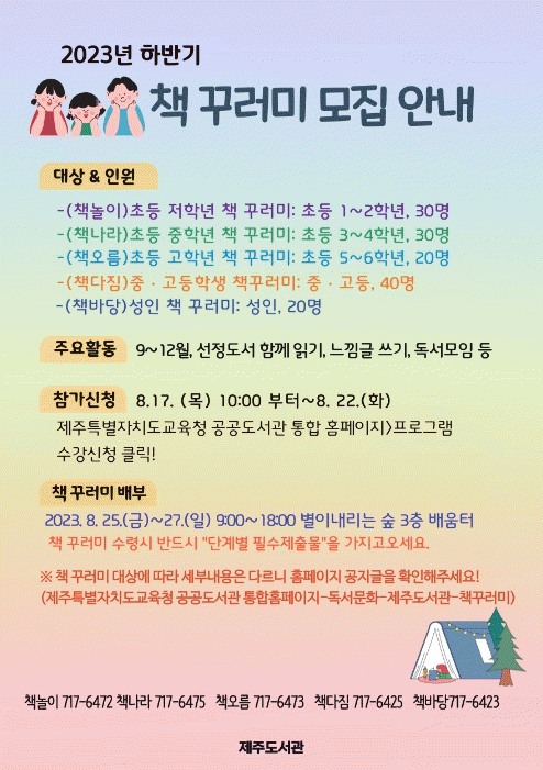 [] Á¦ÁÖµµ±³À°Ã» Á¦ÁÖµµ¼°ü, 2023 ÇϹݱâ Ã¥ ²Ù·¯¹Ì Ȱµ¿ Âü¿© Èñ¸ÁÀÚ ¸ðÁý |2023. 08.11