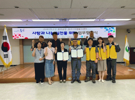 [ÃæÃ»±Ç] »ç¶û°ú ³ª´® ½ÇõÀ» À§ÇÑ (ÁÖ)¼¼¾ÆÆ¯¼ö° ÃæÁÖ°øÀå&ÃæÁÖ½ÃÀÚ¿øºÀ»ç¼¾ÅͰ£ MOU ü°á |2023. 08.10