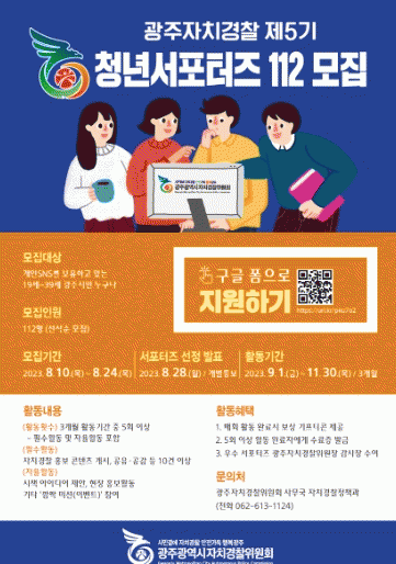 [È£³²±Ç] ±¤ÁÖ±¤¿ª½ÃÀÚÄ¡°æÂû, û³â ¼Æ÷ÅÍÁî 112¸í »Ì´Â´Ù |2023. 08.09
