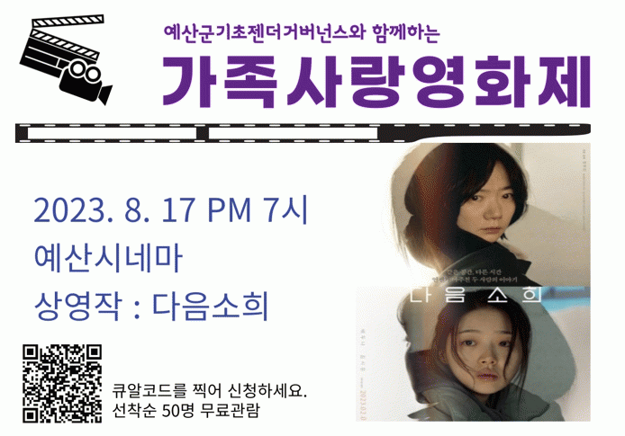 [ÃæÃ»±Ç] ¿¹»ê±º, ±âÃÊÁ¨´õ°Å¹ö³Í½º 17ÀÏ ¿ÀÈÄ 7½Ã ¿¹»ê½Ã³×¸¶¿¡¼ ¡®°¡Á·»ç¶û¿µÈÁ¦¡¯ °³ÃÖ |2023. 08.09