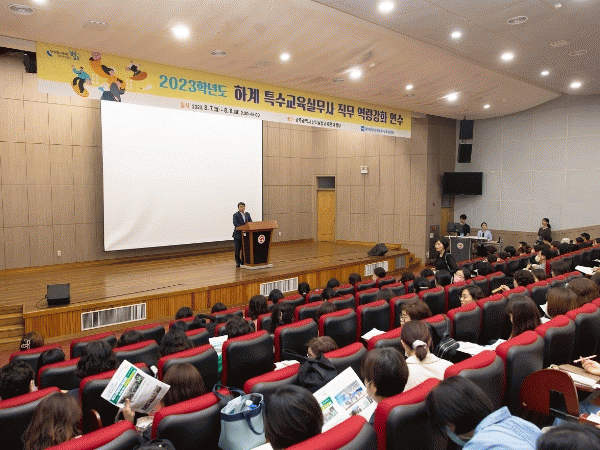 [HKSÇàÁ¤¹æ¼Û]±¤Áֽñ³À°Ã»ÀÌ 7~8ÀÏ ±¤ÁÖ±¤¿ª½ÃâÀÇÀ¶ÇÕ±³À°¿ø ´ë°´ç¿¡¼ Àå¾ÖÇлýÀ» Áö¿øÇϴ Ư¼ö±³À°½Ç¹«»ç 220¿©¸íÀÌ Âü¿©ÇÏ´Â ¡®2023Çг⵵ ÇÏ°è Æ¯¼ö±³À°½Ç¹«»ç Á÷¹« ¿ª·® °È ¿¬¼ö¡¯¸¦ ½Ç½ÃÇß´Ù°í ¹àÇû´Ù.