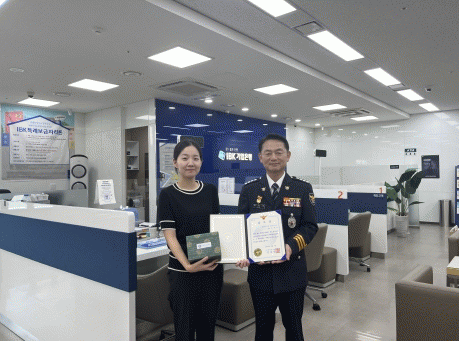 [HKSÇàÁ¤¹æ¼Û]õ¾Èµ¿³²°æÂû¼´Â ¡¯23. 8. 7 15½Ã°æ º¸À̽ºÇǽÌ(ÀüȱÝÀ¶»ç±â) ÇÇÇØ¸¦ ¸·Àº IBK±â¾÷ÀºÇà õ¾Èû¼öÁöÁ¡ Á÷¿ø¿¡°Ô °¨»çÀåÀ» Àü´ÞÇß´Ù. IBK±â¾÷ÀºÇà õ¾Èû¼öÁöÁ¡ ¼ÒÀ±¾Æ(32¼¼, ¿©)°úÀåÀº Áö³´Þ 28ÀÏ ÀºÇà¿¡ ¹æ¹®ÇÑ °í°´ A¡¦