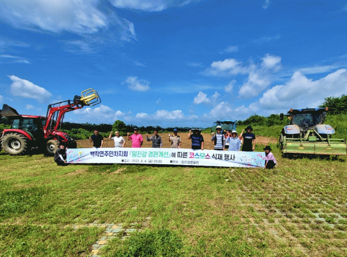 [HKSÇàÁ¤¹æ¼Û]¿¬Ãµ±º ¹éÇиé ÁÖ¹ÎÀÚġȸ´Â 7ÀÏ ÀÓÁø°º¯ °æ°ü°³¼±À» À§ÇØ ÄÚ½º¸ð½º¸¦ ½ÄÀçÇß´Ù. À̹ø ½ÄÀç »ç¾÷Àº ÄÚ½º¸ð½º °³È ½Ã±â¿Í Ãß¼® ¿¬ÈÞ¿¡ ¸ÂÃç °ü±¤°´µé¿¡°Ô ¾Æ¸§´Ù¿î ¹éÇÐÀÇ Ç³°æÀ» º¸¿©ÁÖ±â À§ÇØ ¸¶·ÃµÆ´Ù. ¹éÇиé ÁÖ¹ÎÀÚ¡¦