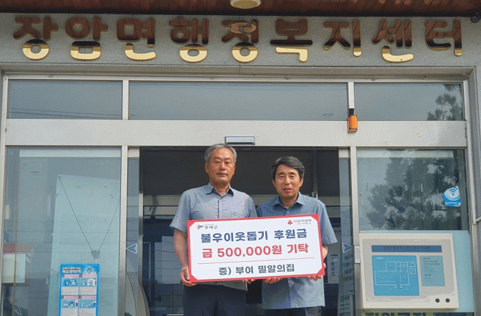 [HKSÇàÁ¤¹æ¼Û]ºÎ¿© Àå¾Ï¸é ºÎ¿©¹Ð¾ËÀÇÁýÀº Áö³ 2ÀÏ Àå¾Ï¸éÇàÁ¤º¹Áö¼¾Å͸¦ ¹æ¹®ÇØ Àå¾Ï¸é ¼öÇØ ÀÌÀç¹ÎÀ» À§ÇØ ½á´Þ¶ó¸ç ¾î·Á¿î ÀÌ¿ôµ½±â ¼º±Ý 60¸¸¿øÀ» Àü´ÞÇß´Ù. ¹Ð¾ËÀÇÁýÀº Àå¾ÖÀκ¹Áö½Ã¼³¿î¿µ, Àå¾ÖÀÎ Áö¿ª»çȸÀçȰ»ç¾÷ µîÀÇ Àå¾ÖÀκ¹¡¦