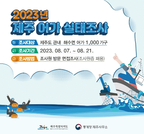 [HKSÇàÁ¤¹æ¼Û]Á¦ÁÖÆ¯º°ÀÚÄ¡µµ´Â Åë°èû Á¦Áֻ繫¼Ò¿Í Çù¾÷ÇØ 7~21ÀÏ ¡®2023³â Á¦ÁÖ ¾î°¡½ÇÅÂÁ¶»ç¡¯¸¦ ½Ç½ÃÇÑ´Ù. À̹ø Á¶»ç´Â Á¦ÁÖ ¾î°¡ÀÇ °æ¿µÇüÅ ¹× ±¸Á¶ µîÀ» ÆÄ¾ÇÇØ ¾î¾÷°æ¿µÈ¯°æÀ» Áø´ÜÇϰí Áö¿ª ¸ÂÃãÇü ¼ö»êÁ¤Ã¥ ¼ö¸³ÀÇ ±âÃÊÀÚ·á·Î¡¦
