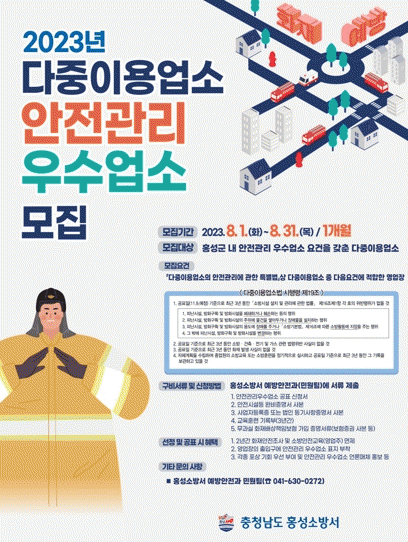 [ÃæÃ»±Ç] È«¼º¼Ò¹æ¼, 2023³â ´ÙÁßÀÌ¿ë¾÷¼Ò ¾ÈÀü°ü¸® ¿ì¼ö¾÷¼Ò ½ÅûÇϼ¼¿ä! |2023. 08.03