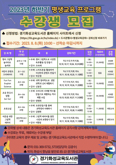 [¼öµµ±Ç] °æ±âȼº±³À°µµ¼°ü,Æò»ý±³À° ÇÁ·Î±×·¥¡¯Âü¿©ÀÚ ¸ðÁý |2023. 08.03