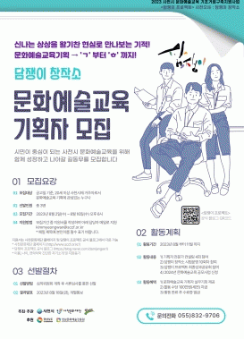 [¿µ³²±Ç] »çõ¹®ÈÀç´Ü, ¡®2023 Áö¿ª ¹®È¿¹¼ú±³À° ±âÃʰÅÁ¡±¸Ãà Áö¿ø»ç¾÷¡¯ ´ãÀïÀÌ Ã¢ÀÛ¼Ò ±âȹÀÚ Àü¹® ÄÁ¼³ÆÃ °úÁ¤ Âü¿©ÀÚ ¸ðÁý |2023. 08.02