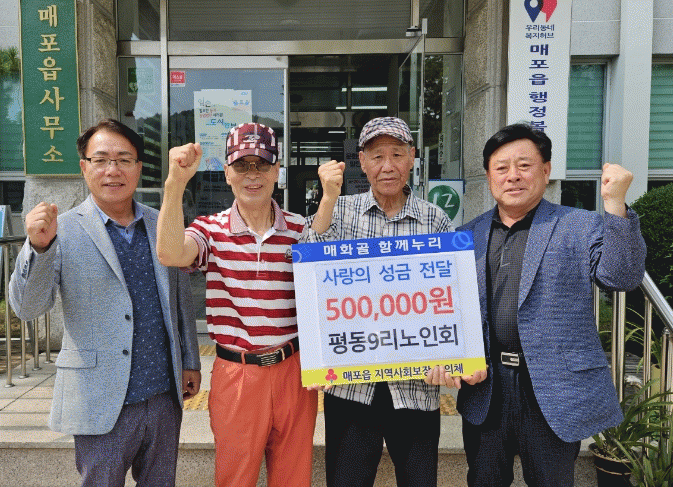 [HKSÇàÁ¤¹æ¼Û]ÃæºÏ ´Ü¾ç±º ¸ÅÆ÷À¾ Æòµ¿9¸® ³ëÀÎȸÀº ¸ÅÆ÷À¾ Áö¿ª»çȸº¸ÀåÇùÀÇü¸¦ ÅëÇØ »ç¶ûÀÇ ¼º±Ý 50¸¸ ¿øÀ» ±âŹÇß´Ù°í Áö³ 1ÀÏ ¹àÇû´Ù.