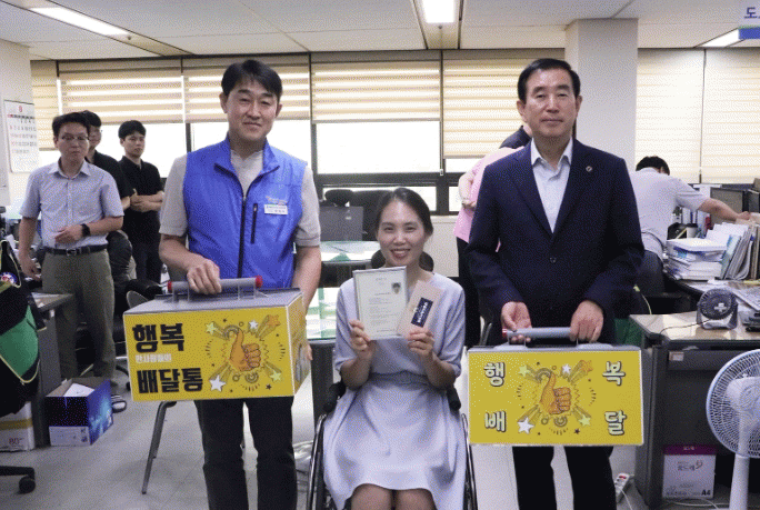 [HKSÇàÁ¤¹æ¼Û]ÃæÁÖ½Ãû°ø¹«¿ø³ëµ¿Á¶ÇÕÀÌ ¡®ÄªÂùÇϸé Çູ¹è´ÞÅë(÷×)ÀÌ °£´Ù¡¯ 7¿ù ÁÖÀΰøÀ¸·Î µµ·Î°ú ÃÖ³ª¿µ ÁÖ¹«°ü(ÇàÁ¤7±Þ)À» ¼±Á¤ÇØ ¹è´ÞÅëÀ» Àü´ÞÇß´Ù.