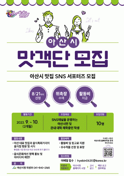 [ÃæÃ»±Ç] ¾Æ»ê½Ã, ¸ÀÁý ¼Æ÷ÅÍÁî '¾Æ»ê½Ã ¸À°´´Ü' ¸ðÁý |2023. 08.01