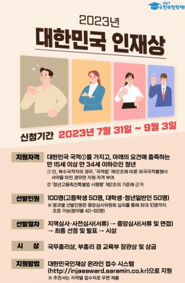 [HKSÇàÁ¤¹æ¼Û]Á¦ÁÖÆ¯º°ÀÚÄ¡µµ´Â ¡®2023 ´ëÇѹα¹ ÀÎÀç»ó¡¯ Á¦ÁÖÁö¿ª ´ëÇлý¡¤Ã»³â ÀϹÝÀÎ ºÎ¹® Èĺ¸ÀÚ¸¦ 7¿ù 31ÀϺÎÅÍ 9¿ù 3ÀϱîÁö ½Åû Á¢¼ö¹Þ´Â´Ù.