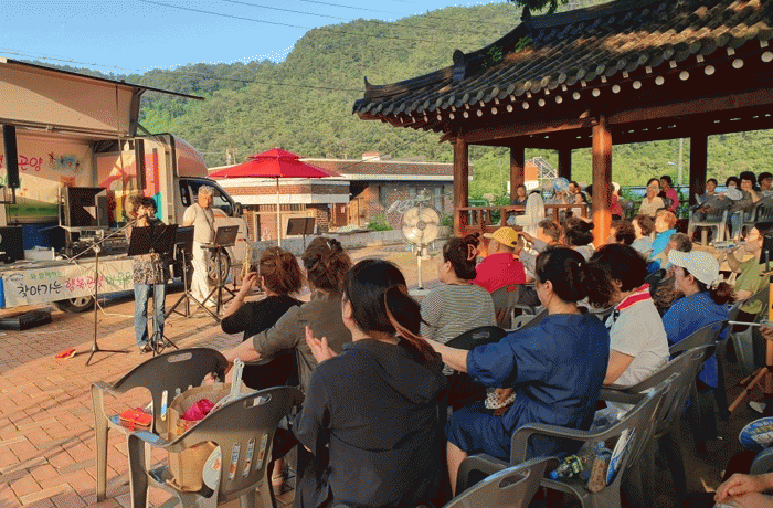 [HKSÇàÁ¤¹æ¼Û]Çѳ·ÀÇ ¹«´õÀ§·Î ÁöÃİ¡´Â ¿©¸§¹ã, ÇÑ ¸¶À»ÀÇ Á¤ÀÚ³ª¹« ¾Õ¿¡¼ ¾Æ¸§´Ù¿î ¿¬ÁÖ¿Í ³ë·¡°¡ ¿ï·Á ÆÛÁö°í ³ªÀÌ Áö±ßÇÑ ¾î¸£½ÅµéÀÌ ÇÑÀÚ¸®¿¡ ¸ð¿© À½¾Ç ¼Ò¸®¿¡ ±Í¸¦ ±â¿ï¿´´Ù.