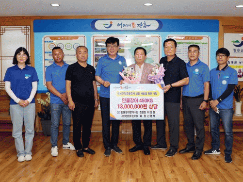 [HKSÇàÁ¤¹æ¼Û](»ç)Çѱ¹¹Î¹°Àå¾î»ý»êÀÚÇùȸ ½Å¿µ·¡ ȸÀå°ú ¹Î¹°Àå¾î¾ç½Ä¼öÇù À̼ºÇö Á¶ÇÕÀåÀÌ 27ÀÏ ÀåÈï ¹°ÃàÁ¦¿¡ »ç, ¿ëÇØ ´Þ¶ó¸ç ¹Î¹°Àå¾î 450kgÀ» ±âŹÇß´Ù.