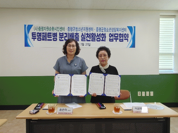 [HKSÇàÁ¤¹æ¼Û] ÁõÆò±ºÃ»¼Ò³â»ó´ãº¹Áö¼¾ÅÍ(¼¾ÅÍÀå À±Àº¹Ì)¿Í ÁõÆòÀÚ¿ø¼øÈ¯½Ã¹Î¼¾ÅÍ(¼¾ÅÍÀå ½Å°Ç¿µ)´Â 27ÀÏ Åõ¸í ÆäÆ®º´ ÀÚ¿ø¼øÈ¯ ½ÇõÀ» À§ÇÑ ¾÷¹«Çù¾àÀ» ü°áÇß´Ù.