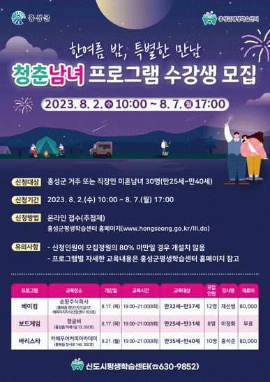 [ÃæÃ»±Ç] È«¼º±º, ¿¬¾Ö¼¼Æ÷¸¦ ±ú¿ì´Â ûÃá³²³à ÇÁ·Î±×·¥ ¼ö°»ý ¸ðÁý |2023. 07.27