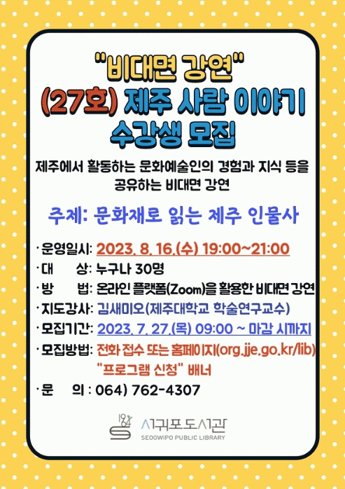 [] Á¦ÁÖµµ±³À°Ã» ¼±ÍÆ÷µµ¼°ü,¡°ºñ´ë¸é °¿¬¡±(27È£) Á¦ÁÖ »ç¶÷ À̾߱⠼ö°»ý ¸ðÁý |2023. 07.27