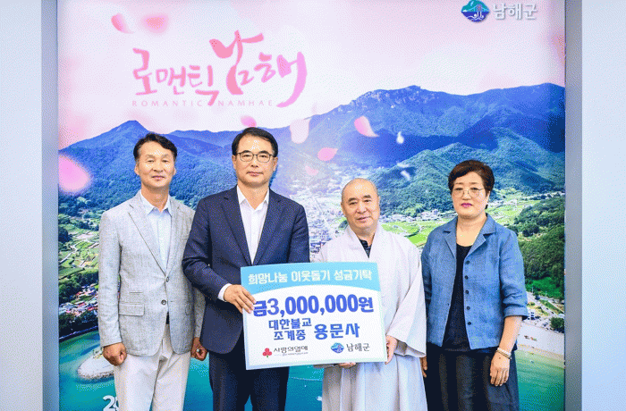 [HKSÇàÁ¤¹æ¼Û]¿ë¹®»ç ½Â¿ø ÁÖÁö½º´Ô°ú ¼ÛÇà¿ °Å»ç¸² ȸÀå, Á¶¿ª ÁöÀåȸ ȸÀåÀº 25ÀÏ ³²ÇرºÃ»À» ¹æ¹®ÇØ ÀÌ¿ôµ½±â ¼º±Ý 300¸¸¿øÀ» ±âŹÇß´Ù.