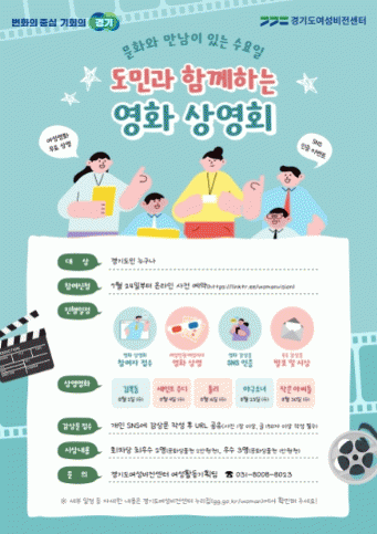 [¼öµµ±Ç] °æ±âµµ¿©¼ººñÀü¼¾ÅÍ, 8¿ù ¸ÅÁÖ ¼ö¿äÀÏ µµ¹Î°ú ÇÔ²²ÇÏ´Â ¿µÈ »ó¿µÈ¸ °³ÃÖ |2023. 07.26