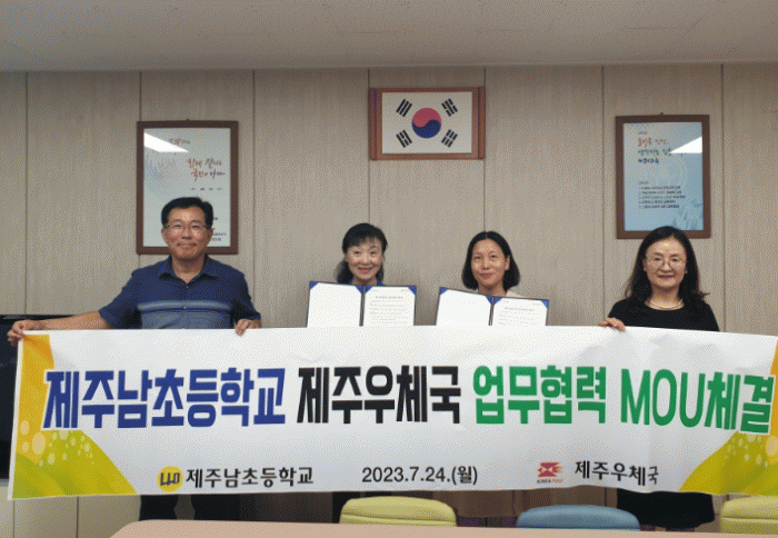 [HKSÇàÁ¤¹æ¼Û]Á¦ÁÖµµ±³À°Ã» Á¦ÁÖ³²ÃʵîÇб³´Â 24ÀÏ Á¦ÁÖ¿ìü±¹°ú ¾÷¹«Çù¾à½ÄÀ» °¡Á³´Ù. ÀÌ´Â Çб³ ÇлýµéÀÇ ÀúÃà½À°ü Àå·Á ¹× ¿Ã¹Ù¸¥ ±ÝÀ¶Áö½Ä ½ÀµæÀº ¹°·Ð, ¿ìü±¹ ¼ºñ½º¿¡ ´ëÇÑ ÀÌÇØµµ¸¦ ³ôÀ̱â À§ÇÏ¿© ½Ç½ÃÇß´Ù. Çù¾àÀÌ ÀÌ·ç¾îÁü¡¦
