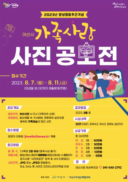 [ÃæÃ»±Ç] 2023³â ¾ç¼ºÆòµîÁÖ°£±â³ä '¾Æ»ê½Ã °¡Á·»ç¶û »çÁø°ø¸ðÀü' °³ÃÖ |2023. 07.25