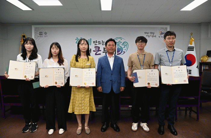 [HKSÇàÁ¤¹æ¼Û]ºÎ¿©±ºÀº »ó¹Ý±â Best Ä£Àý°ø¹«¿øÀ¸·Î ¼±Á¤µÈ Ãà¼ö»ê°ú ÀÌÀºÁ¤ÁÖ¹«°ü°ú º¸°Ç¼Ò À±½Ã³»ÁÖ¹«°ü, ¼®¼º¸é ±èº¸¹Ì ÁÖ¹«°ü¿¡°Ô ǥâÀåÀ» ¼ö¿©Çß´Ù.