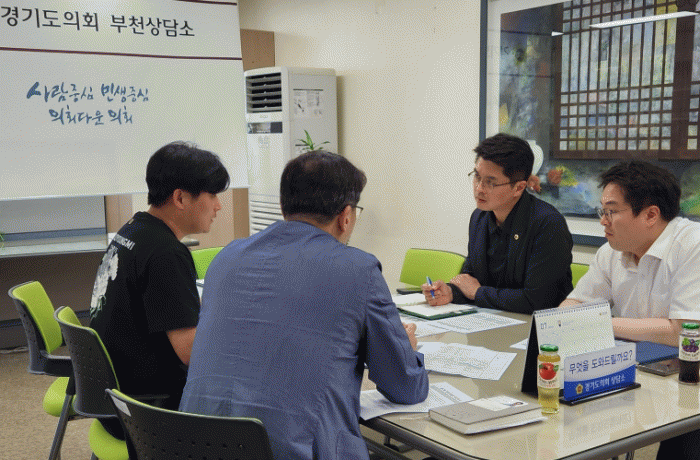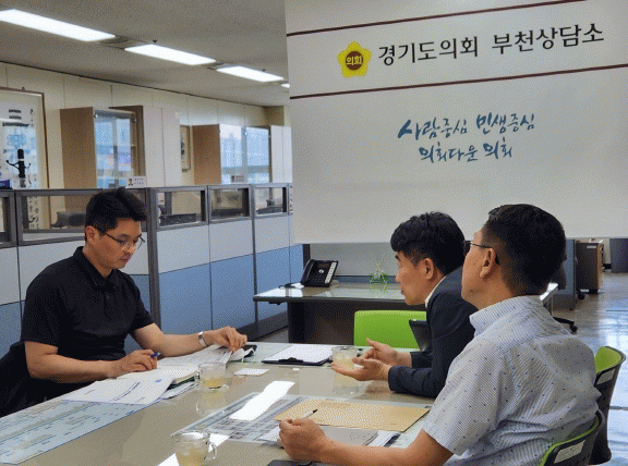 [HKSÇàÁ¤¹æ¼Û]°æ±âµµÀÇȸ ÀÌÀ翵 ÀÇ¿ø(´õ¹ÎÁÖ, ºÎõ3)Àº Áö³ 21ÀÏ ºÎõ»ó´ã¼Ò¿¡¼ ºÎõ½Ãû ¹®È»ê¾÷Àü·« °úÀå°ú ÄÜÅÙÃ÷±â¹Ý ÆÀÀå¿¡°Ô À¥Å÷À¶ÇÕ¼¾ÅÍ ¹× û³â¿¹¼úÀÎÁÖÅà °Ç¸³ ÇöȲ¿¡ °üÇÑ º¸°í¸¦ ¹Þ´Â ÀÚ¸®¸¦ °¡Á³´Ù.