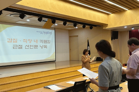 [HKSÇàÁ¤¹æ¼Û]Á¦Áֽñ³À°Áö¿øÃ»Àº Áö³ 19ÀÏ¿¡ Àüü Á÷¿øÀÌ ¸ð¿© °©Áú.Á÷Àå ³» ±«·ÓÈû ±ÙÀý ¼±¾ð¹® ³¶µ¶À» ½Ç½ÃÇß´Ù. À̹ø Çà»ç´Â 2023³â Á¦Áֽñ³À°Áö¿øÃ» °©Áú.Á÷Àå³» ±«·ÓÈû ±ÙÀý ¼¼ºÎ°èȹÀÇ ÀÏȯÀ¸·Î¡®»óÈ£ Á¸ÁßÇÏ°í °ø°¨ÇÏ´Â Çູ¡¦