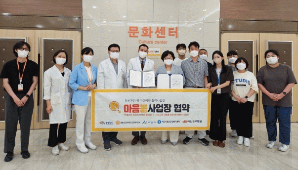 [HKSÇàÁ¤¹æ¼Û]¾Æ»ê½Ã º¸°Ç¼Ò Á¤½Å°Ç°º¹Áö¼¾ÅÍ´Â 19ÀÏ ¾Æ»êÃæ¹«º´¿ø°ú ¡®¸¶À½º½ »ç¾÷À塯 Çù¾à½Ä ¹× ÀÚ»ì ¿¹¹æ Ä·ÆäÀÎÀ» ¿°í, ±Ù·ÎÀÚ Á¤½Å°Ç° ÁõÁøÀ» À§ÇÑ ¾÷¹«Çù¾àÀ» ü°áÇß´Ù.