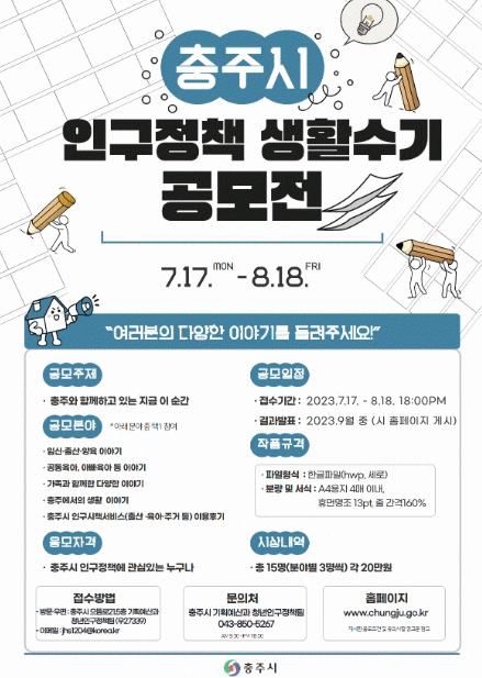 [ÃæÃ»±Ç] ÃæÁÖ½Ã, Àα¸Á¤Ã¥ »ýȰ¼ö±â °ø¸ðÀü °³ÃÖ |2023. 07.20