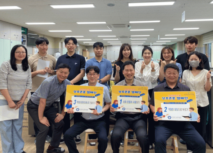 [HKSÇàÁ¤¹æ¼Û]¼±ÍÆ÷½Ã±³À°Áö¿øÃ»Àº 17ÀÏ »óÈ£ Á¸ÁßÇÏ°í °ø°¨ÇÏ´Â ÇູÇÑ Á÷Àå ¹®È Á¶¼ºÀ» À§ÇØ¡®°©Áú?Á÷Àå ³» ±«·ÓÈû ±ÙÀý ½Çõ Ä·ÆäÀΡ¯À» ÃßÁøÇß´Ù. À̳¯ Çà»ç´Â Àü Á÷¿øÀÌ °©Áú¡¤Á÷Àå ³» ±«·ÓÈû ±ÙÀý ¼±¾ð¹®À» ³¶µ¶Çϰí, °©Áú?Á÷¡¦