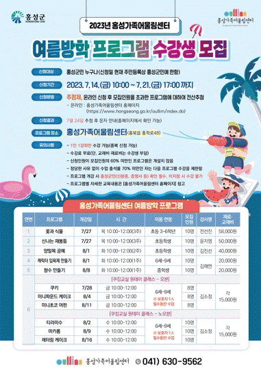 [ÃæÃ»±Ç] È«¼º°¡Á·¾î¿ï¸²¼¾ÅÍ ¿©¸§¹æÇÐ ÇÁ·Î±×·¥ ¼ö°»ý ¸ðÁý |2023. 07.17