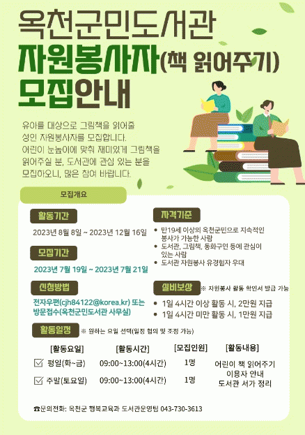 ÀÚ¿øºÀ»çÀÚ´Â 8¿ùºÎÅÍ 12¿ù±îÁö 5°³¿ù°£ Ȱµ¿Çϸç, ÆòÀÏ(È~±Ý) 09½ÃºÎÅÍ 13½Ã±îÁö, Åä¿äÀÏ 09½ÃºÎÅÍ 13½Ã±îÁö ÇÏ·ç 4½Ã°£¾¿ ºÀ»ç Ȱµ¿À»¡¦ |