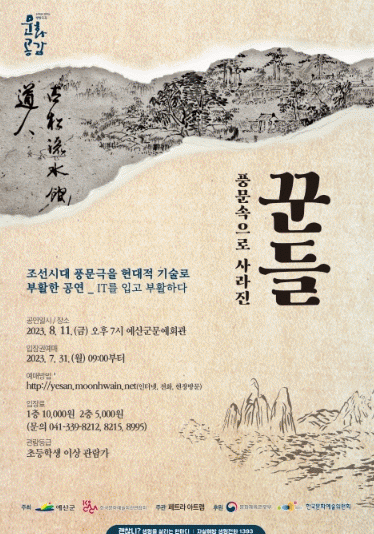 [HKSÇàÁ¤¹æ¼Û]¿¹»ê±º¹®¿¹È¸°üÀº 2023³â Çѱ¹¹®È¿¹¼úȸ°ü¿¬ÇÕȸ °ø¸ð»ç¾÷ ¡®¹æ¹æ°î°î ¹®È°ø°¨»ç¾÷¡¯ ¼±Á¤µÈ 5°³ ÀÛǰ Áß ¿ÃÇØ 2¹øÂ° ÀÛǰÀÎ ¡®Ç³¹® ¼ÓÀ¸·Î »ç¶óÁø ²Ûµé¡¯ °ø¿¬À» ¿À´Â 8¿ù 11ÀÏ ¿ÀÈÄ 7½Ã¿¡ ¹®¿¹È¸°ü °ø¿¬Àå¿¡¼ °³ÃÖÇÑ´Ù¡¦ |