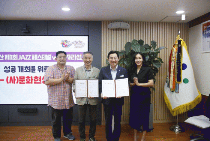 [HKSÇàÁ¤¹æ¼Û]¾Æ»ê½Ã°¡ Àü±¹ ÃÖ°í ±ÇÀ§¸¦ ÀÚ¶ûÇÏ´Â ¡®ÀÚ¶ó¼¶ JAZZ Æä½ºÆ¼¹ú¡¯°ú ¼ÕÀ» Àâ°í, Áö¿ª¿¡¼ µ¿½Ã¿¡ °ø¿¬À» À翬ÇÏ´Â ÇÁ·ÎÁ§Æ®¿¡ ³ª¼±´Ù. ¹Ú°æ±Í ¾Æ»ê½ÃÀåÀº 13ÀÏ (»ç)¹®ÈÇö»ó ÀÎÀçÁø ÀÌ»çÀå°ú ¡®¾ÆÆ®¹ë¸® ¾Æ»ê Á¦1ȸ JAZZ Æä½º¡¦