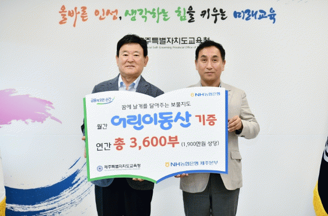 [HKSÇàÁ¤¹æ¼Û]Á¦ÁÖÆ¯º°ÀÚÄ¡µµ±³À°Ã»Àº 7¿ù 12ÀÏ NH³óÇùÀºÇà Á¦ÁÖº»ºÎ¿¡¼ µµ³» ¸ðµç ÃʵîÇб³¿¡ ¿ù°£'¾î¸°À̵¿»ê'À» ±âÁõÇß´Ù°í ¹àÇû´Ù. NH³óÇùÀºÇà Á¦ÁÖº»ºÎ´Â µ¶¼È¯°æ Á¶¼º, ÇнÀµ¿±â ºÎ¿© ¹× Á¤¼ ÇԾ翡 µµ¿òÀÌ µÉ ¼ö ÀÖµµ·Ï Áö³¡¦