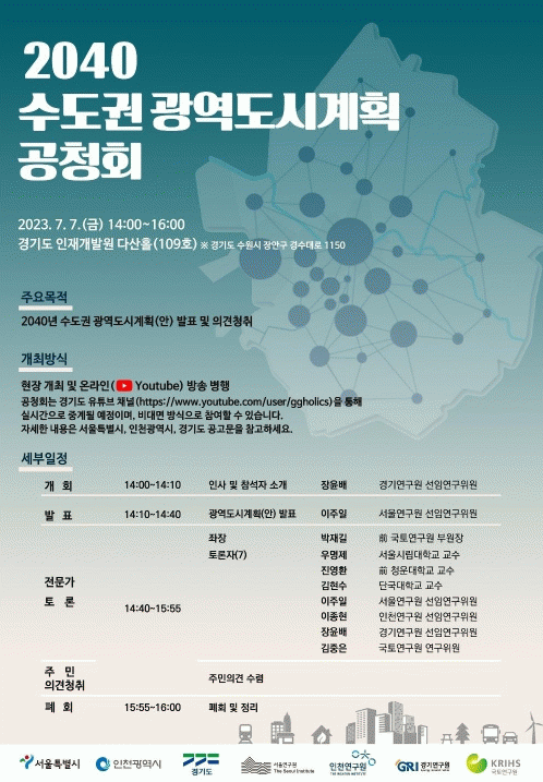 [¼öµµ±Ç] °æ±âµµ, 2,600¸¸ ¸í ¼öµµ±ÇÀÇ ¹Ì·¡»ó Á¦½ÃÇÏ´Â ¡®2040 ¼öµµ±Ç ±¤¿ªµµ½Ã°èȹ¡¯ °øÃ»È¸ °³ÃÖ |2023. 07.06