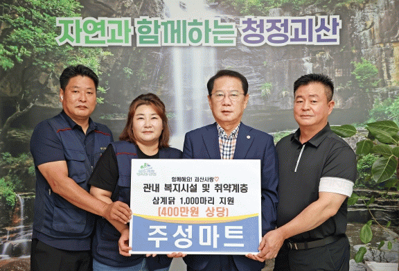[HKSÇàÁ¤¹æ¼Û]ÃæºÏ ±«»ê±º ÁÖ¼º¸¶Æ®´Â 6ÀÏ ±«»ê±ºÃ»À» ¹æ¹®ÇØ °ü³» Ãë¾à°èÃþÀ» À§ÇÑ »ï°è´ß 1000¸¶¸®(400¸¸¿ø »ó´ç)¸¦ Àü´ÞÇß´Ù.