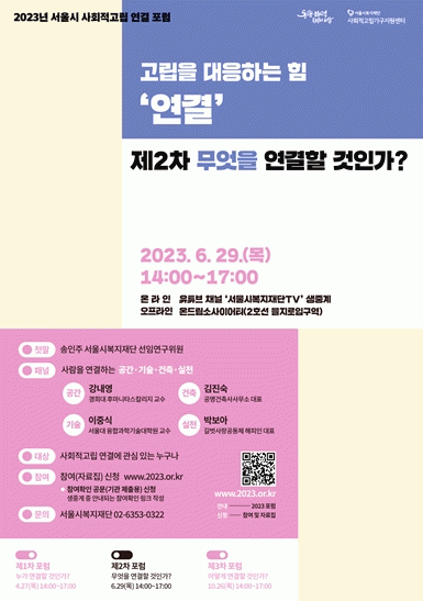 [¼öµµ±Ç] ¼¿ï½Ãº¹ÁöÀç´Ü, 29ÀÏ Á¦2Â÷ ¼¿ï½Ã »çȸÀû°í¸³ ¿¬°á Æ÷·³ °³ÃÖ |2023. 06.29