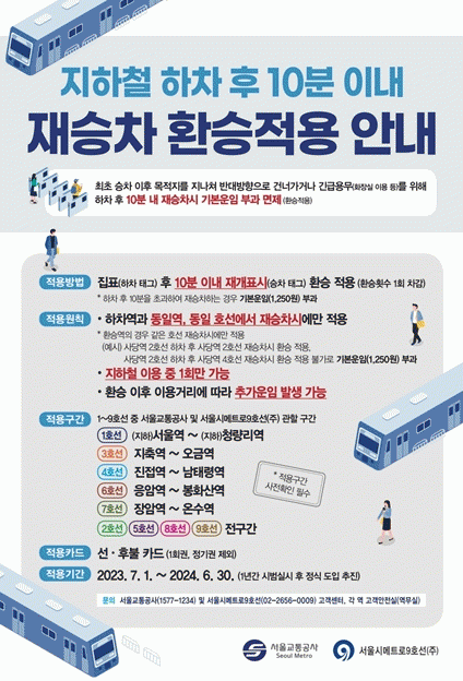 [¼öµµ±Ç] ¼¿ï½Ã, 7¿ù 1ÀϺÎÅÍ `âÀÇÇàÁ¤ 1È£` `ÇÏÂ÷ ÈÄ 10ºÐ ³» Àç½ÂÂ÷½Ã ȯ½Â` Àû¿ë |2023. 06.28