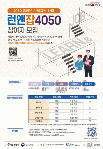 [HKSÇàÁ¤¹æ¼Û]¼¿ï½Ã50Ç÷¯½ºÀç´ÜÀº ¼¿ï½ÃÀÇ ÁßÀå³â Á¾ÇÕÁö¿øÁ¤Ã¥ ¡®¼¿ï·±4050¡¯»ç¾÷ÀÇ ÀÏȯÀ¸·Î ÀÌÁ÷À» Èñ¸ÁÇÏ´Â 4050¼¼´ë¸¦ À§ÇÑ ÁýÁßÁö¿ø ÇÁ·Î±×·¥ ¡®·±¾ØÀâ4050¡¯À» ¿î¿µÇϰí Âü¿©ÀÚ¸¦ ¸ðÁýÇÑ´Ù.