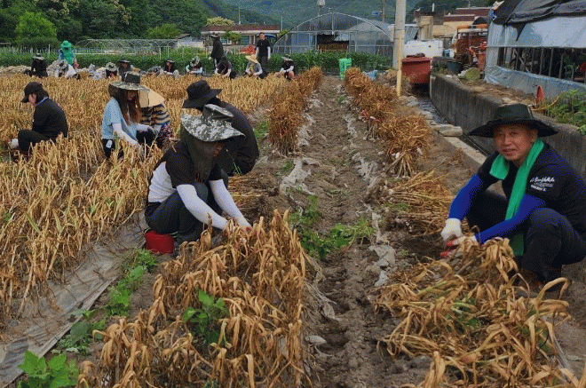 [HKSÇàÁ¤¹æ¼Û]´Ü¾ç±º ´ë°¸é, ±ºÃ» Áֹκ¹Áö°ú¿Í ±ÕÇü°³¹ß°ú Á÷¿øµé 20¿© ¸íÀº Áö³ 21ÀÏ ´ë°¸é ȲÁ¤¸®ÀÇ Ãë¾à°èÃþ ³ó°¡¸¦ ã¾Æ ¸¶´Ã ¼öÈ® ÀÛ¾÷À» ÇÏ¸ç ±¸½½¶¡À» Èê·È´Ù.