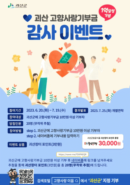 [ÃæÃ»±Ç] ±«»ê±º, °íÇâ»ç¶û±âºÎ±Ý 1¾ï¿ø ±â³ä °¨»ç À̺¥Æ® ÃßÁø