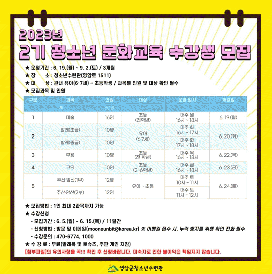 [HKSÇàÁ¤¹æ¼Û]Àü³² ¿µ¾Ï±ºÀÌ ¹ÌÃëÇÐ ¾Æµ¿ºÎÅÍ Ã»¼Ò³â±îÁö ´Ù¾çÇÑ ¿¬·É´ë¿¡ ¸ÂÃãÇü ÇÁ·Î±×·¥À» Á¦°øÇϱâ À§ÇØ 2±â û¼Ò³â ¹®È±³À° ¼ö°»ýÀ» ¸ðÁýÇÑ´Ù.