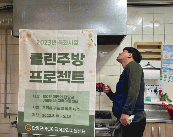 [HKSÇàÁ¤¹æ¼Û]´Ü¾ç±º ¸ÅÆ÷À¾ ¼ÒÀç ´Ü¾ç±º¾î¸°À̱޽İü¸®Áö¿ø¼¾ÅÍ¿¡¼´Â 5¿ù 10ÀϺÎÅÍ 24ÀϱîÁö ȸ¿øµî·Ï ±Þ½Ä¼Ò¸¦ ´ë»óÀ¸·Î Á¶¸®½Ç Èĵå û¼Ò ¹× ³ëÈÄ È¯Ç³±â ±³Ã¼»ç¾÷ÀÎ ¡®Å¬¸°ÁÖ¹æ ÇÁ·ÎÁ§Æ®¡¯¸¦ ½Ç½ÃÇß´Ù.
