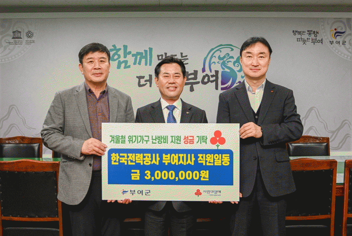 [HKSÇàÁ¤¹æ¼Û]Çѱ¹Àü·Â°ø»ç ºÎ¿©Áö»ç Á÷¿ø Àϵ¿Àº ÃÖ±Ù ºÎ¿©±ºÃ»À» ¹æ¹®ÇØ °ü³» ¾î·Á¿î ÀÌ¿ôÀ» À§ÇÑ ³¹æºñ Áö¿ø ¼º±Ý 300¸¸¿øÀ» ±âŹÇß´Ù.