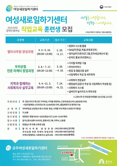 [ÃæÃ»±Ç] °øÁÖ¿©¼º»õ·ÎÀÏÇϱ⼾ÅÍ, 2023³â Á÷¾÷±³À°ÈƷûý ¸ðÁý |2023. 02.24