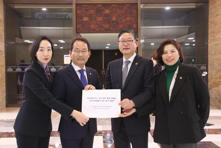 ¼¼Á¾½ÃÀÇȸ ±³À°¾ÈÀüÀ§¿øÈ¸ ¼Ò¼Ó ±èÇö¿Á‧±èÈ¿¼÷‧¾È½ÅÀÏ ´õºÒ¾î¹ÎÁÖ´ç ÀÇ¿øµéÀÌ ±¹È¸¸¦ ã¾Æ ¼¼Á¾½Ã¹ý ÀϺΰ³Á¤ Çʿ伺¿¡ ´ëÇØ ÇÇ·ÂÇß´Ù.