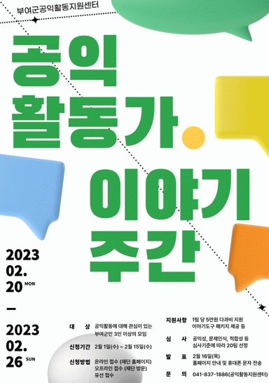 [ÃæÃ»±Ç] (Àç)ºÎ¿©±ºÁö¿ª°øµ¿Ã¼È°¼ºÈÀç´Ü,¡®°øÀÍȰµ¿°¡ À̾߱âÁÖ°£¡¯ Âü¿©ÀÚ ¸ðÁý |2023. 02.06