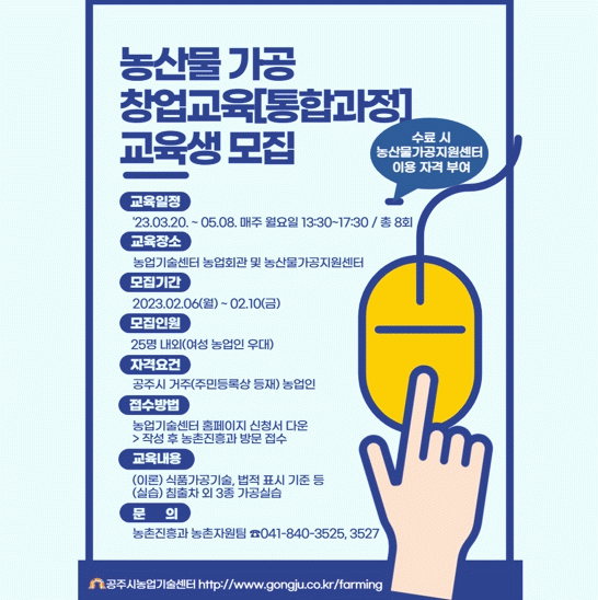 [ÃæÃ»±Ç] °øÁÖ½Ã, »ó¹Ý±â ³ó»ê¹° °¡°ø â¾÷±³À° ±³À°»ý 25¸í ¸ðÁý |2023. 01.31